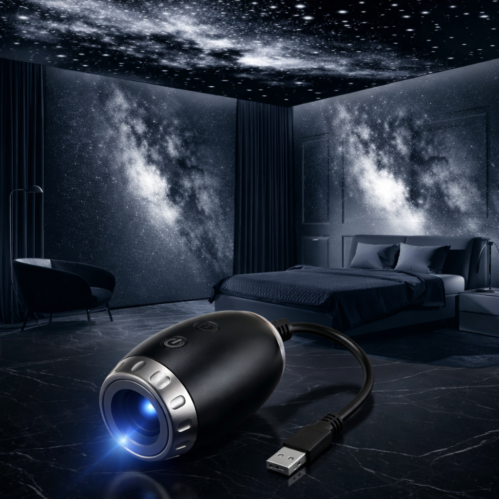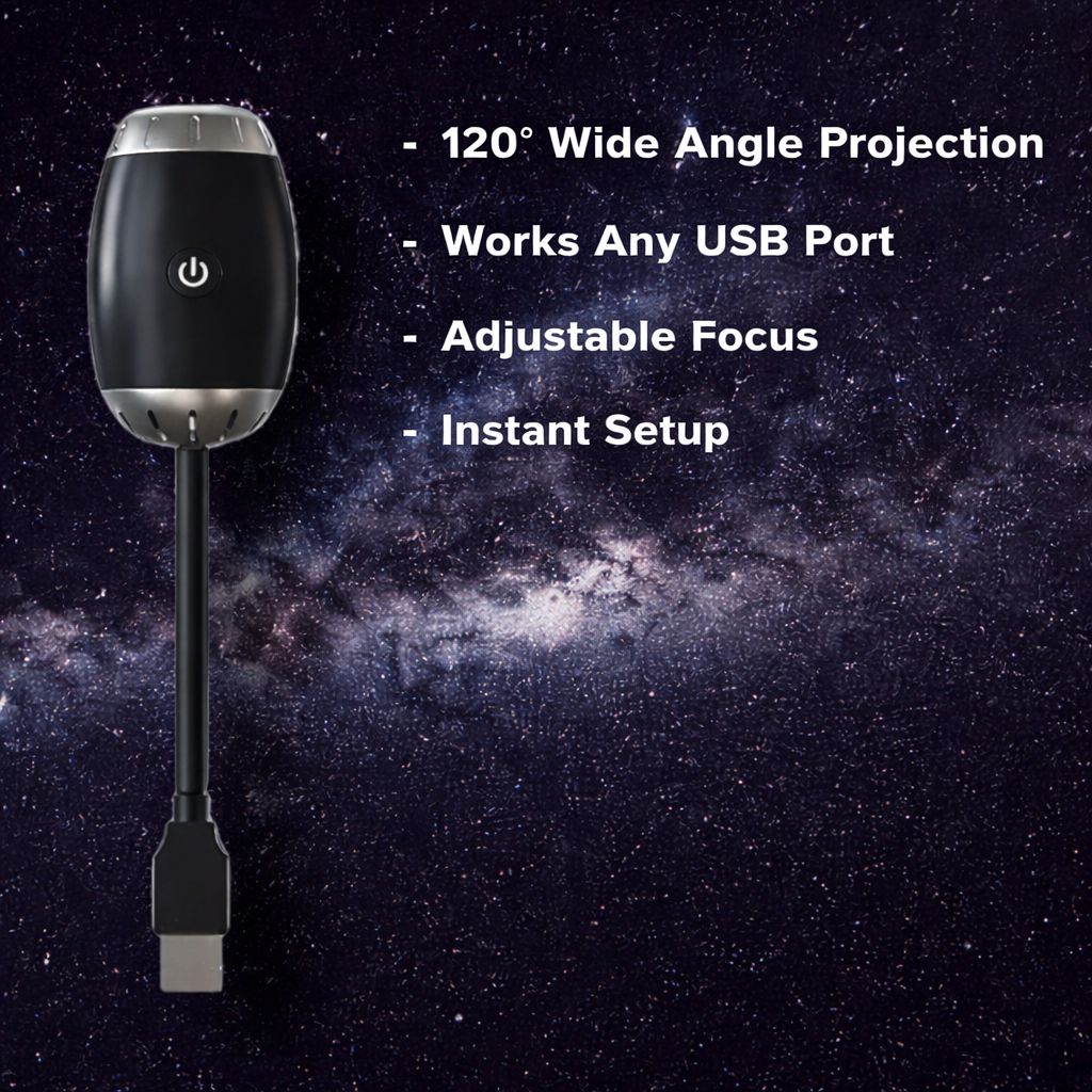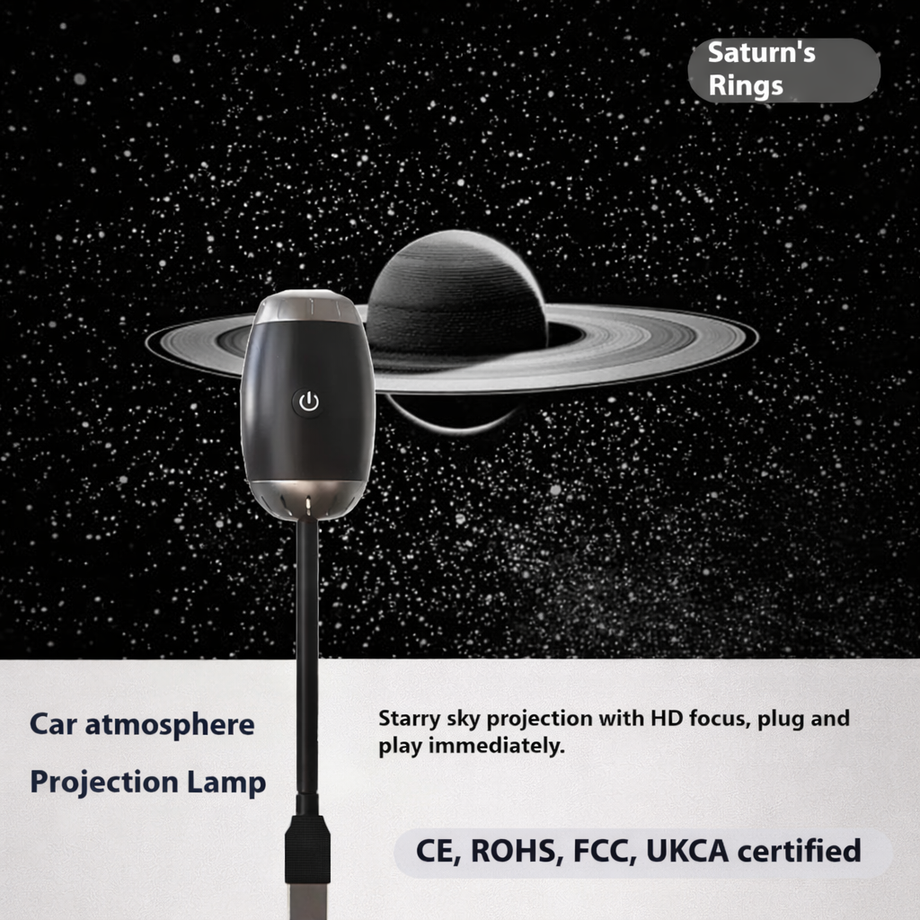 USB-powered starry sky projector lamp for cars, bedrooms, ceilings, and gaming rooms. Creates beautiful Saturn, Galaxy, Black Hole, and Starry Sky effects for a relaxing and stylish atmosphere.